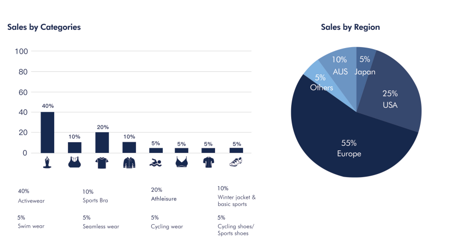 アクティブウエア・スポーツブラ・アスレジャー・防寒アウター・シームレスウェア・水着・サイクリングウェア・サイクリングシューズ・ベーシックスポーツウエア等、ボリュームゾーンのOEM/ODMの発注を7つのセールスチームが鋭意対応しています。
